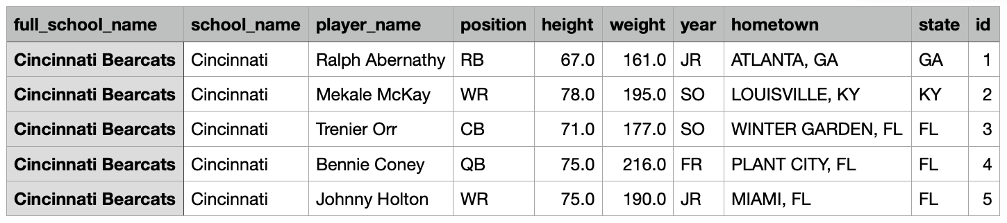 SELECT * FROM benn.college_football_players